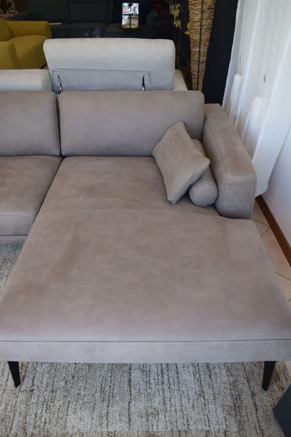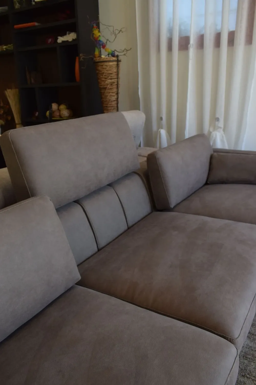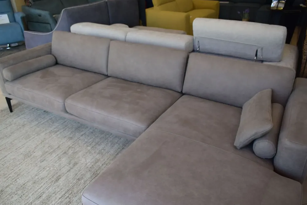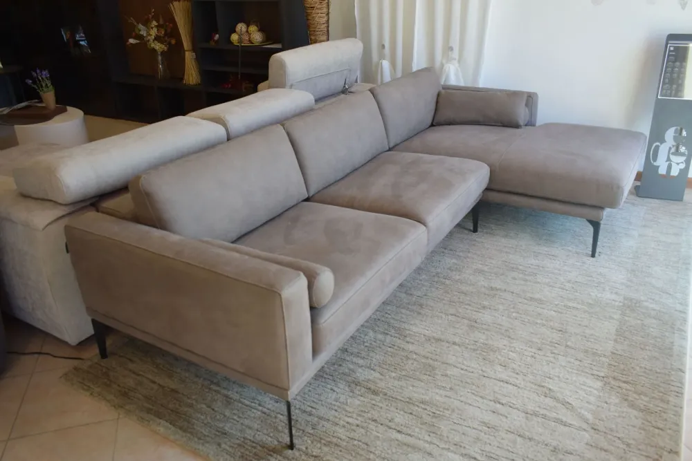 Comfort, eleganza, praticità e leggerezza, è questo il manifesto dello stile MASÙ. Il divano a penisola disegnato dal Centro Stile Egoitaliano, è caratterizzato da un meccanismo manuale che rende possibile lo spostamento degli schienali verso l’alto aumentando così, oltre al comfort, anche la profondità delle sedute. Struttura realizzata in legno abbinato a particelle di legno grezzo biodegradabile e pannelli di fibra di legno duro. La struttura è dotata di un inserto in metallo con funzione portante. Tessuto Cashmere, un nuovo tessuto tecnico dall’aspetto visivo e tattile vicinissimo al nabuk, con caratteristiche innovative. La sua straordinaria morbidezza deriva da un processo di produzione esclusivo che elimina le impurità e irregolarità. Piedi In metallo verniciato con colori a base di polveri epossidiche nelle tinte previste sulle palette disponibili. Cuscini arredo a rullo compresi. Le dimensioni sono 270x157cm. Spedizione compresa nel prezzo in tutta Italia. La nostra offerta è di euro 2400,00. Per maggiori informazioni contattaci via mail o passa a trovarci nel nostro showroom.