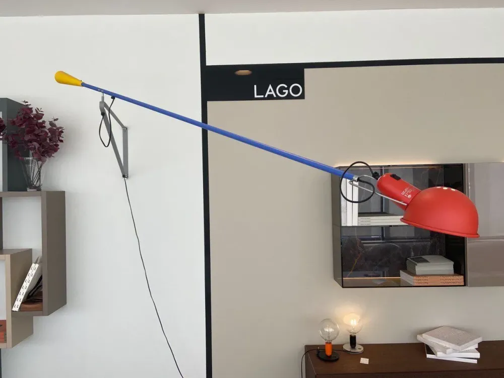 Riflettore e braccio orientabile in acciaio verniciato multicolor.