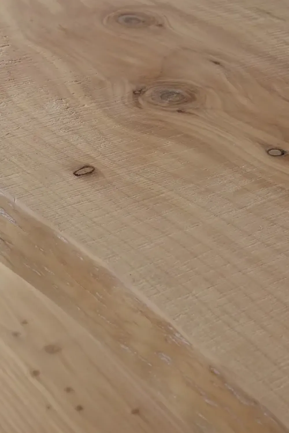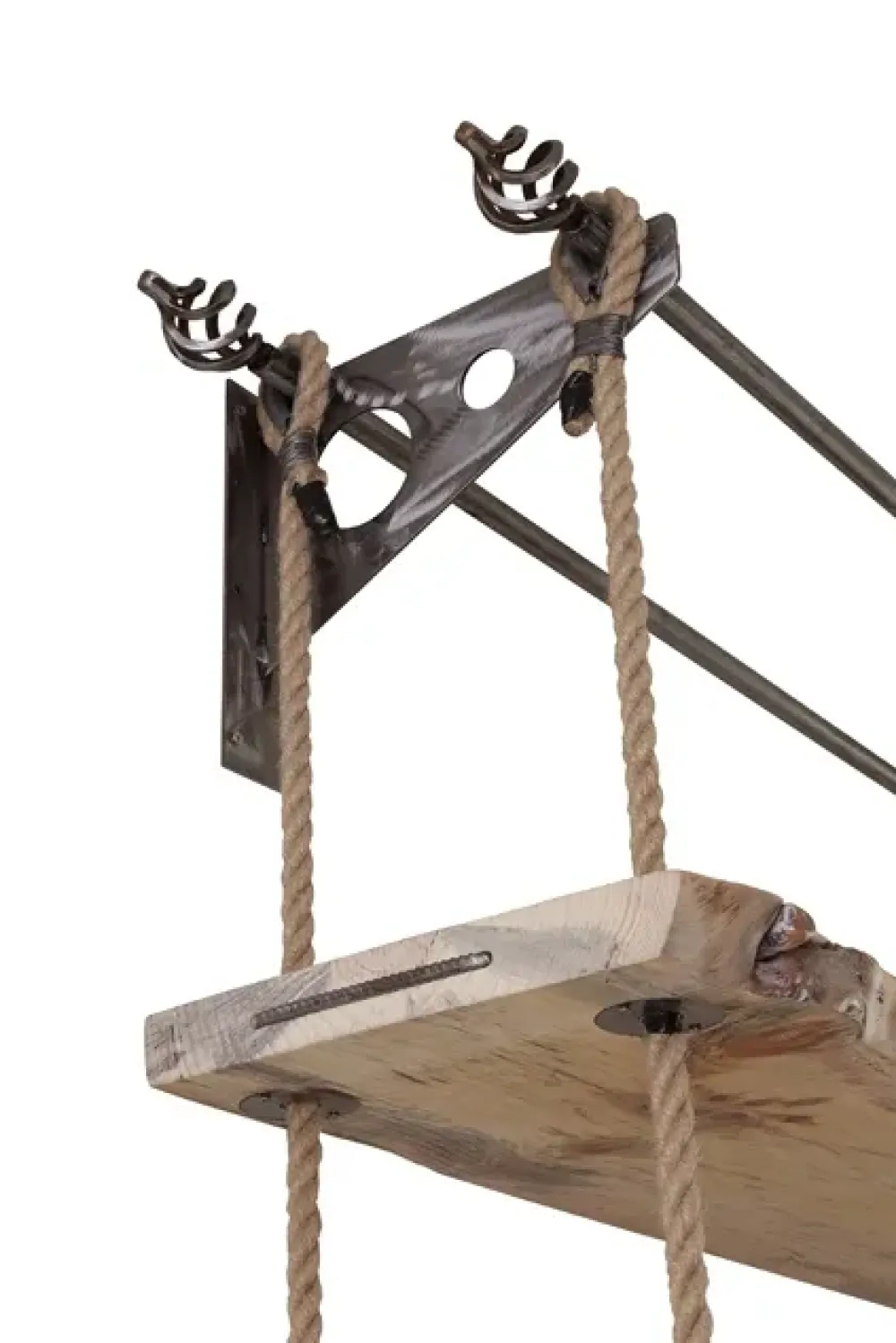 Libreria appesa a parete con piani orizzontali in legno di conifera, corde in juta e ferro crudo. Su ogni piano sono presenti cinque longherine in ferro, di cui tre sulla parte posteriore e due sui lati corti. Tutti i piani sono sostenuti da corde in iuta a sua volta sostenute da barre e staffe ancorate sulla parete. Il bordo anteriore è scortecciato, in quello posteriore le due superfici e i lati corti sono rifiniti con taglio sega. La verniciatura è color bianco opaco leggermente patinato. Dimensioni prodotto: L 203 × H 243.3 × P 46 cm.