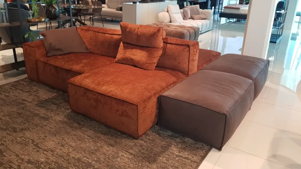 Rivestimento tessuto 1221 col 10 Ocra-pouf in pelle Oasis 30205 marrone scuro