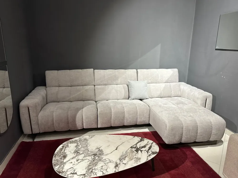 I mobili, tra cui pure gli imbottiti, non devono mai essere ingombranti, prima di tutto per quanto riguarda lo spazio che impegnano all’interno dei locali; difatti è così rilevante valutare attentamente anche le loro dimensioni: il modello di Con penisola visibile in foto è appartenente alla linea di imbotti del brand di lunghezza che varia da 301 a 325 cm ed è quindi ideale per un luogo di molteplici misure.