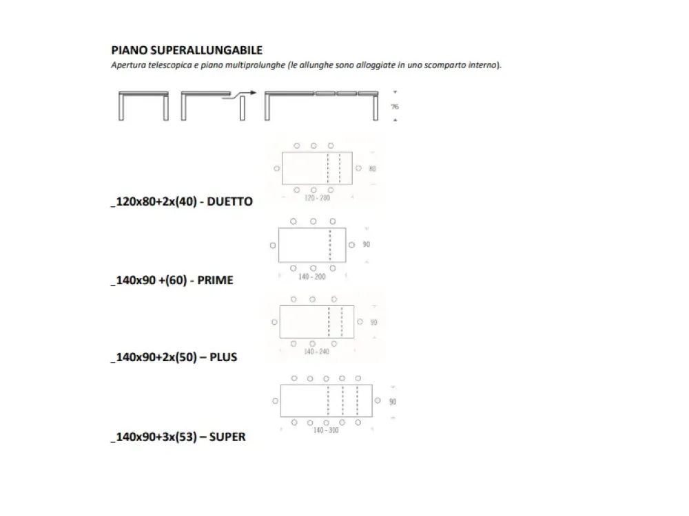 Dimensioni 160 X 90 allungabile fino a 260 cm