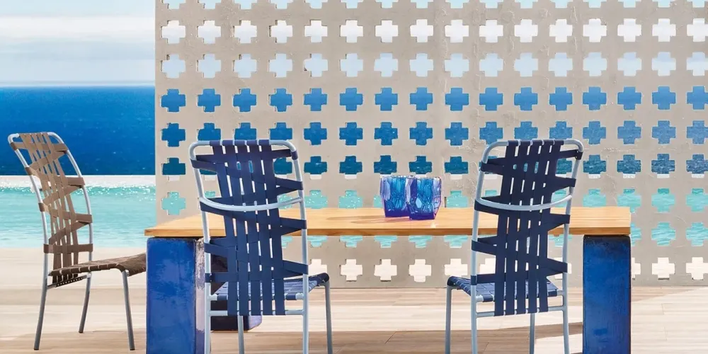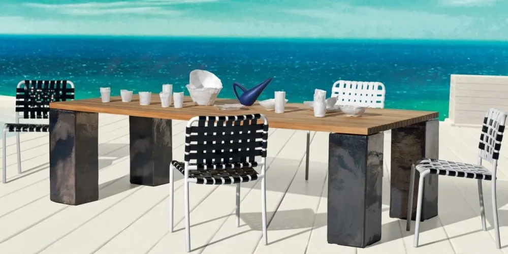 Il tavolo Inout 34 è un tavolo di Gervasoni che può essere posto in ambienti interni oppure in ambienti esterni. Il tavolo è disponibile con consegna circa 15 giorni. Il piano del tavolo Inout è in legno, a doghe di teak naturale, mentre i piedi sono in ceramica di colore Blu, Bianco,o Grigio Antracite, con struttura portante in acciaio. DIMENSIONI: L 210, P 112, H 71 cm