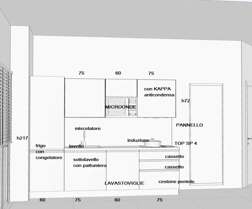 gli elementi della cucina POSSONO essere spostati in base agli impianti del cliente