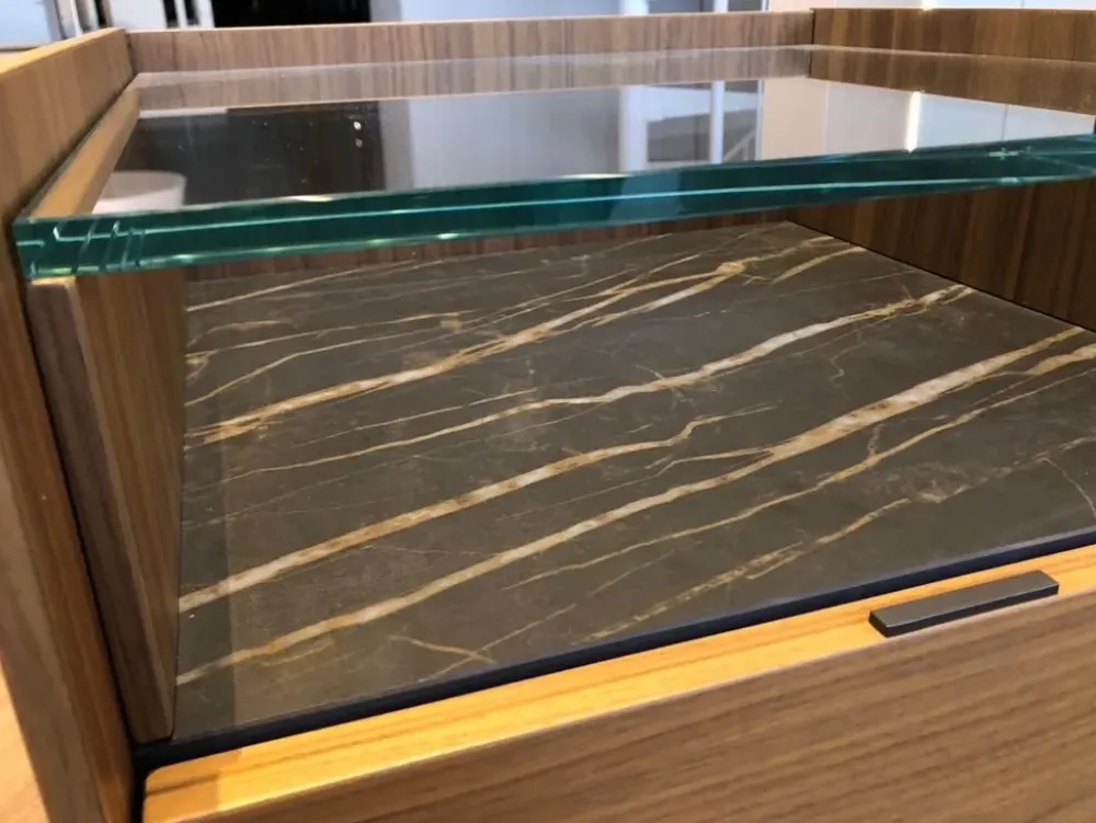 • Top: Ceramica effetto marmo Noir Desir opaco / Vetro extra-trasparente spessore 1,2cm