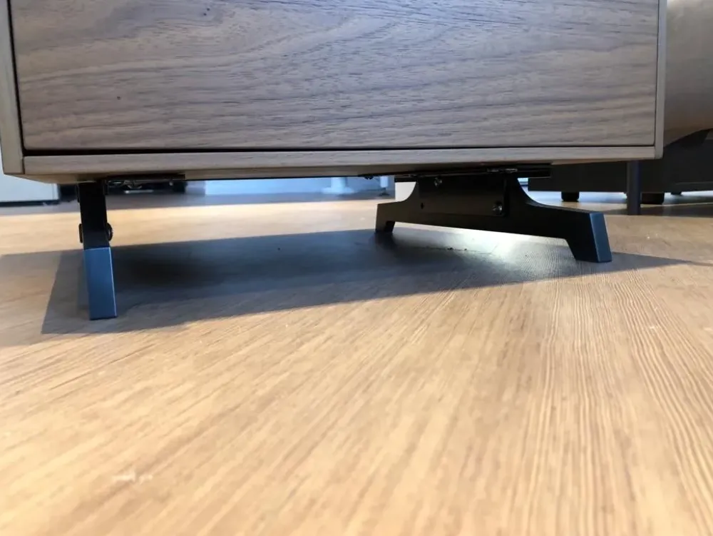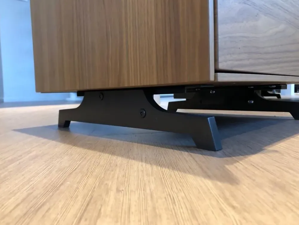 • Basamento: sospeso, sagomato, piedini H.8cm, finitura metallo epossidico Brown