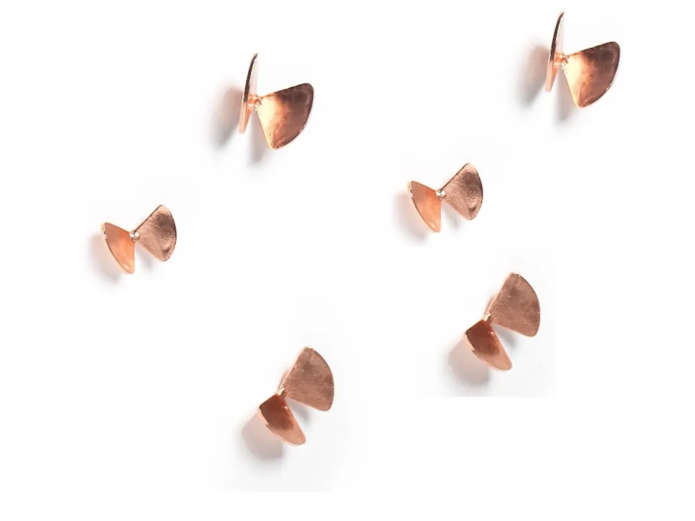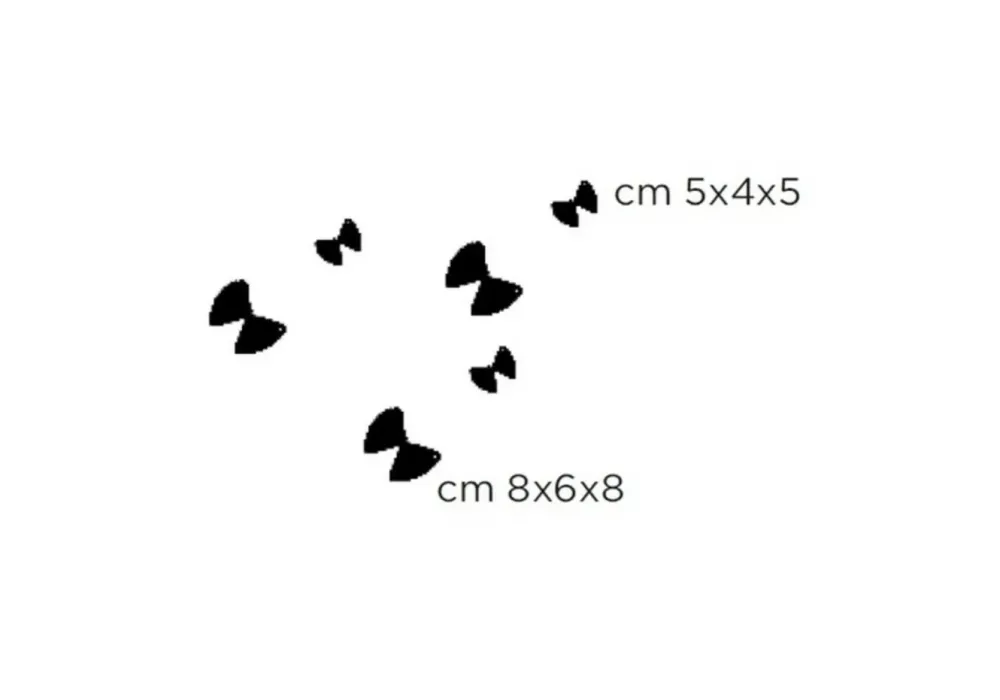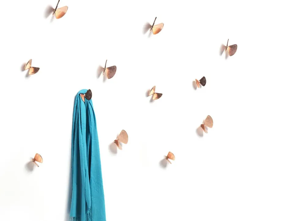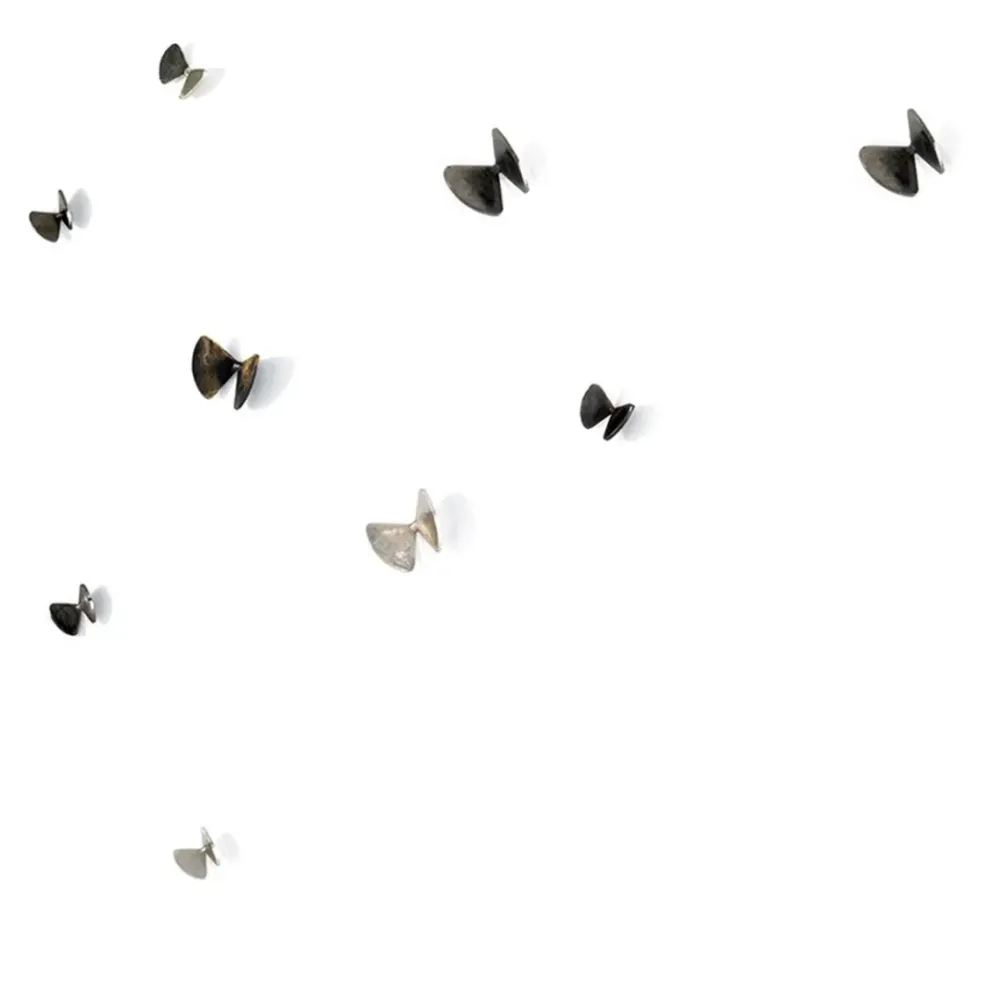 Kit di sei farfalle appendiabiti Mogg modello Bice in promozione. Appendiabiti molto moderno e curioso, composto da un kit di sei farfalle in fusione di ottone. C’è la possibilità di scegliere tra un kit di farfalle miste o un kit di farfalle di rame, in quest’ultimo caso ci sarà un supplemento sul prezzo. Nella finitura mista il kit si compone di farfalle con due misure e tre finiture: due farfalle in finitura nichelata lucida, due in finitura nichelata nera e due in finitura ottone ossidato, mentre nella finitura rame il kit si compone di farfalle con due misure finitura ottone. Le dimensioni per farfalla in cm sono: L.8, P.6, H.8-L.5, P.4, H.5.