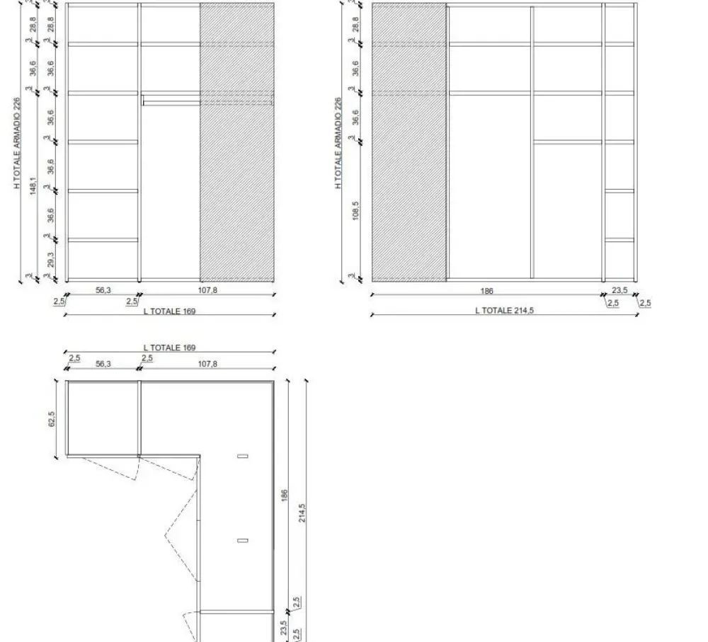 Scheda tecnica armadio Core angolare apertura totale