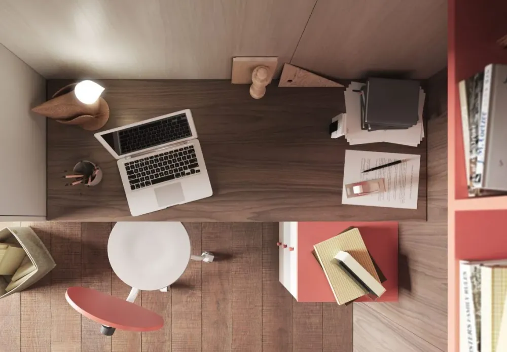 - Scrivania con fianco ad Elle per un angolo lavoro ergonomico e avvolgente