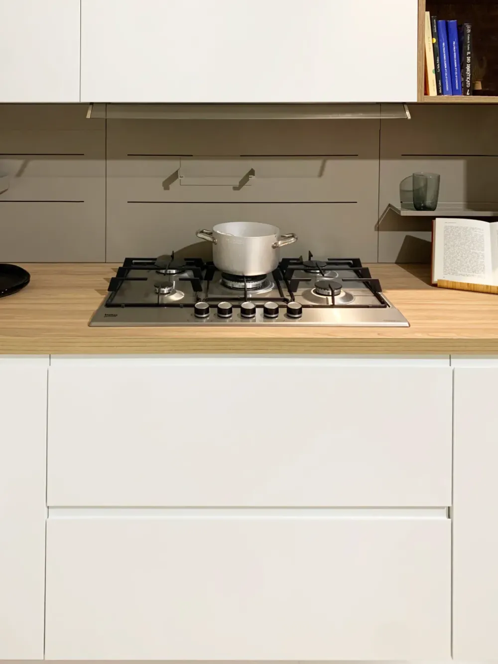 - La cucina occorre che sia bella e funzionale, quindi Pura è completata con una cappa a incasso in grado di eliminare vapore e odori.