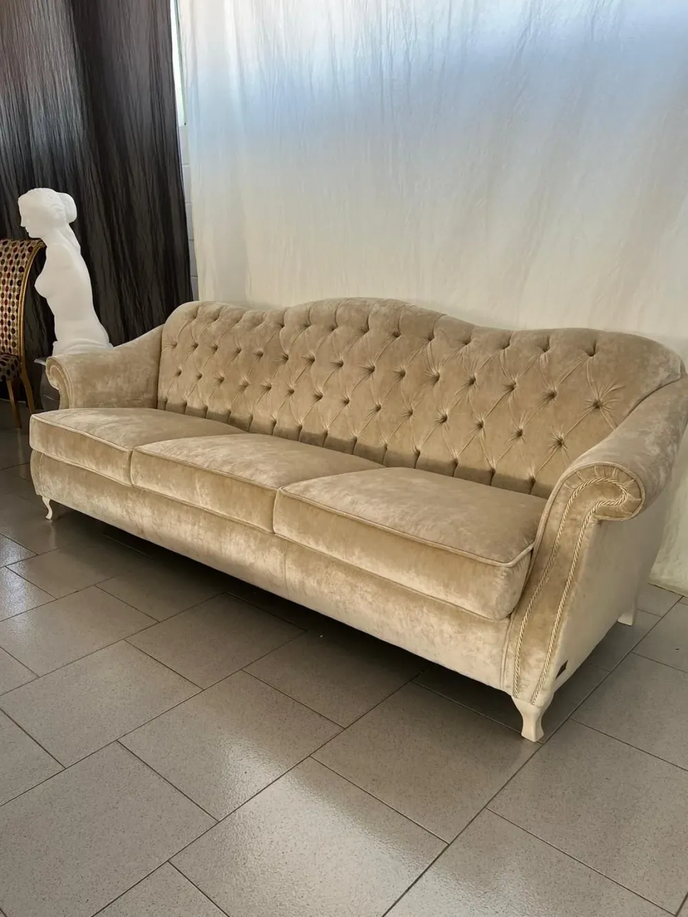 - I complementi d’arredo per il living, tra cui anche i divani come questo modello Chanel pronta consegna, sono fondamentali sia dal punto di vista dell’estetica che per quanto riguarda la funzionalità, in quanto combinano le doti di funzionalità e stile dell’ambiente: un imbottito di grande personalità come questo non ti lascerà deluso.