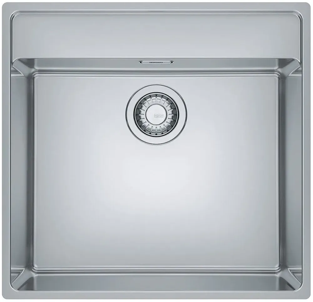 Lavello sotto top FRANKE nel modello MARIS nella finitura inox satinato è dotato di 1 vasca con profondità 180 mm e raggio 16, troppopieno perimetrale, cestello Premium, gruppo di scarico e sifone.