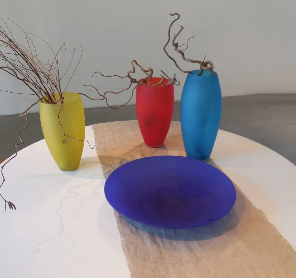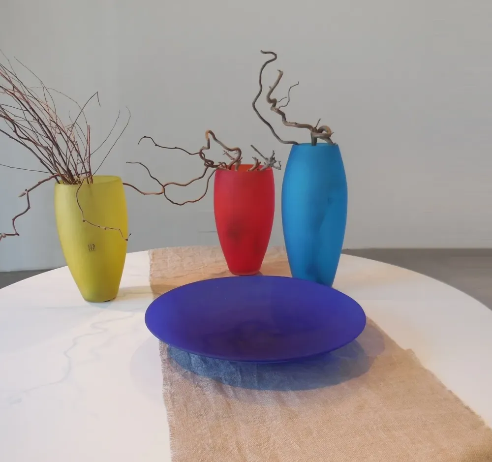 Collezione Vasi in Vetro di25 Contattaci per acquistare o ricevere maggiori dettagli! nella foto posati su tavolo kartell ,sedie DESALTO e lampada pallucco