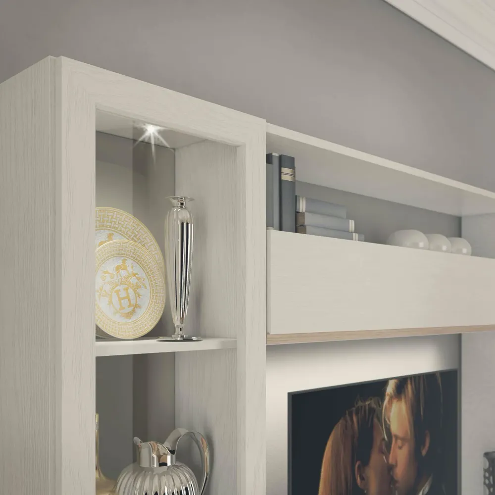 - La composizione per la zona giorno qui visibile è realizzata in materiali di prima scelta e resistenti negli anni: questo modello, in particolare, è in laminato materico.