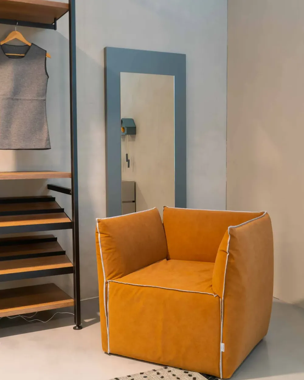 Una poltrona accogliente e informale, nella forma e nello stile.