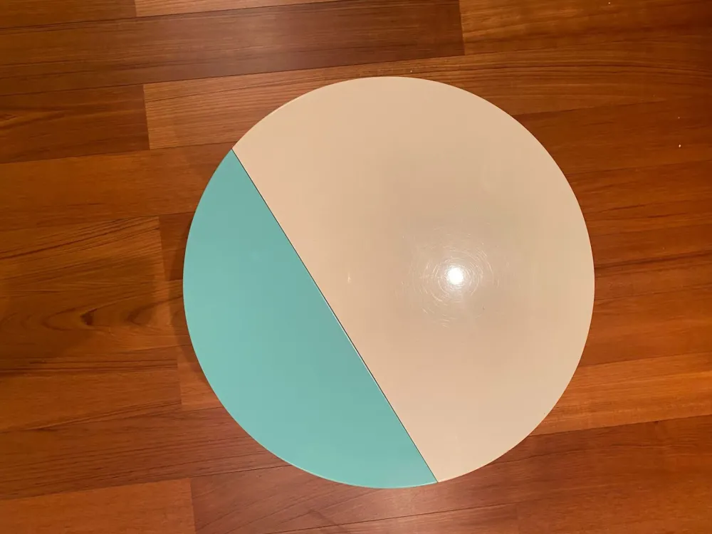 PIANO LEGNO LACCATO BICOLORE (BIANCO/CELESTE)CON BASE INFERIORE IN FERRO COLOR NERO