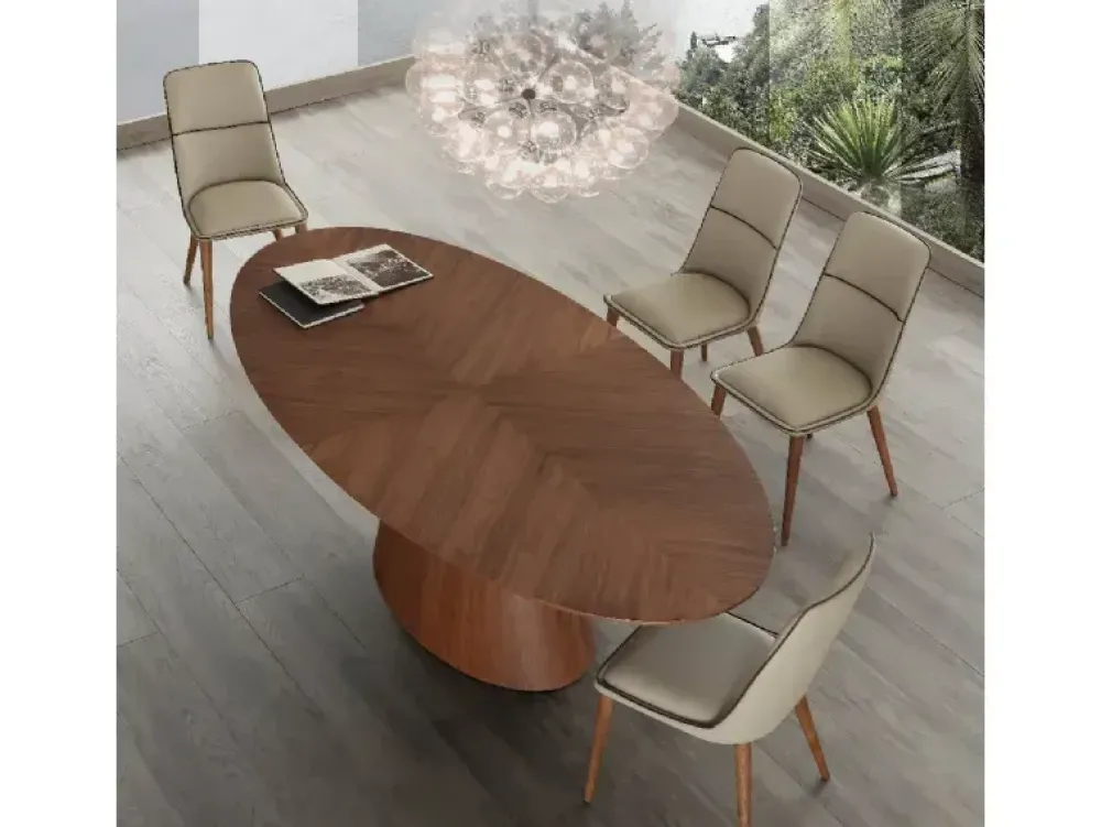 - Una struttura con basamento centrale ultima l’estetica del tavolo Ellittico qui disponibile, che si confermerà in questo modo protagonista del soggiorno o della zona cucina in cui è collocato, grazie alla sua figura dall’estetica raffinata.