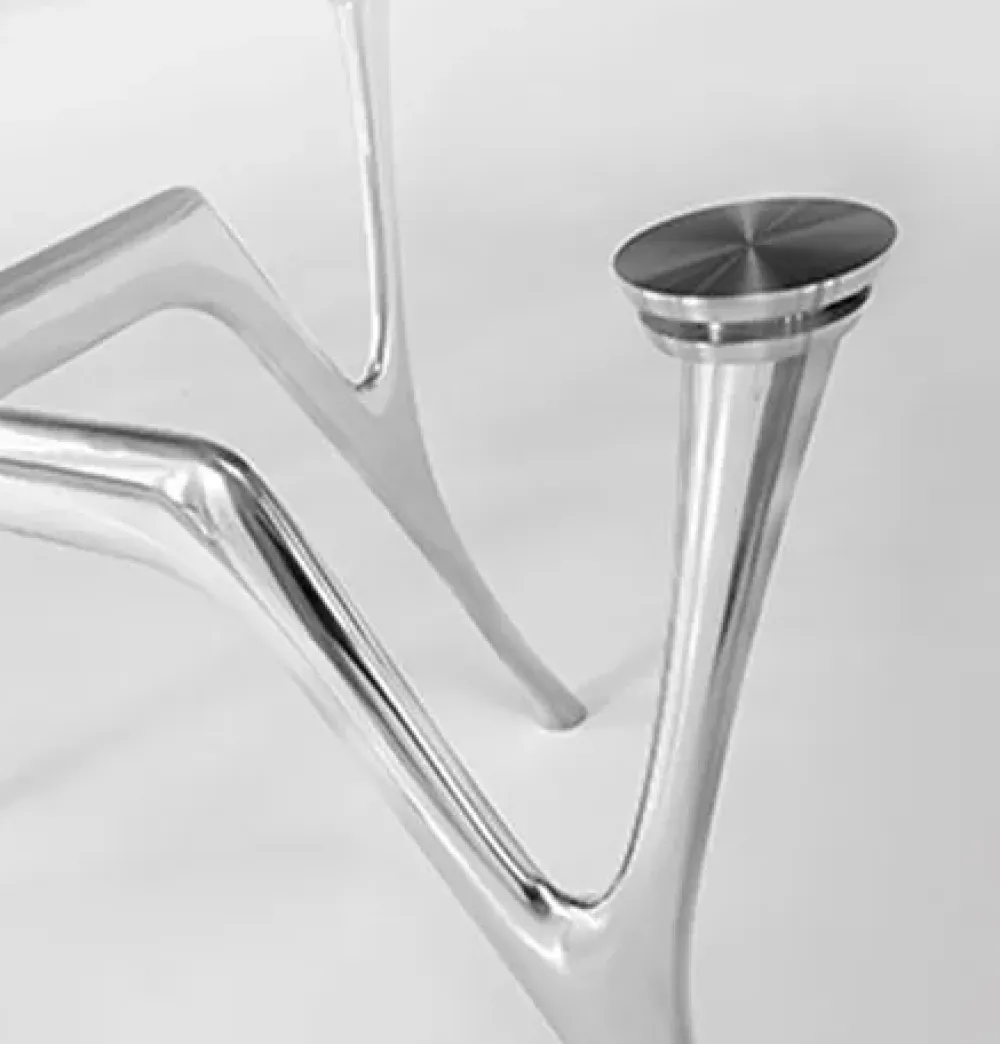 Tavolo rettangolare PEGASO con struttura in fusione di alluminio lucidato. Piano rettangolare in vetro temperato e molato trasparente spessore 12 mm. Dimensioni L180 P90 H73 Su richiesta è disponibile in altre dimensioni e finiture