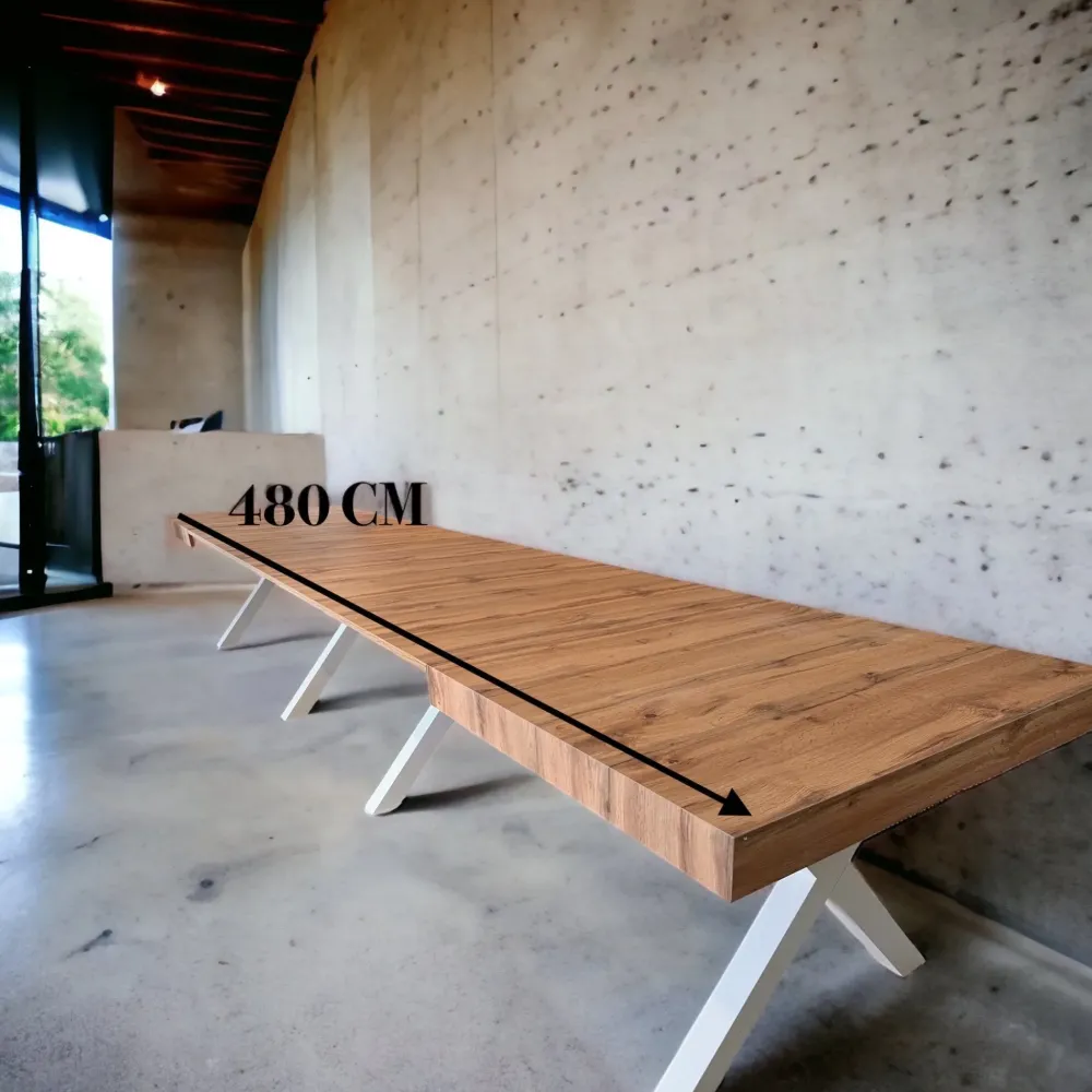 MISURA DA CHIUSO 180X100 SI ALLUNGA FINO A CM 480 TRAMITE L’UTILIZZO DI 6 ALLUNGHE DA CM 50 USABILI SINGOLARMENTE.
