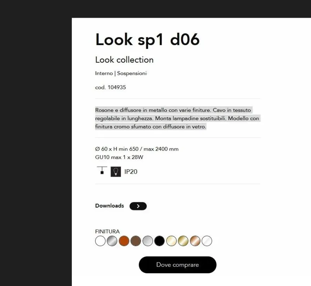 Le molteplici proposte di illuminazione del marchio sono disponibili in una vasta scelta di materiali e texture; il modello qui presente, ad esempio, è realizzato in metallo, materiale ideale per rispondere alle più molteplici richieste funzionali, assicurandoti di completare dal punto di vista estetico la tua casa.
