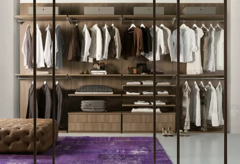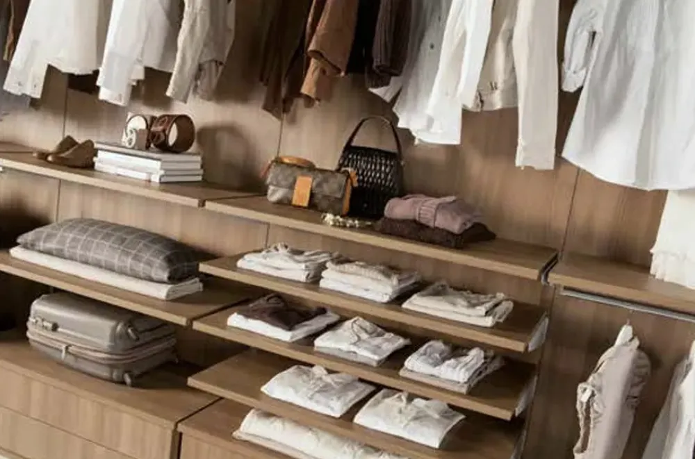 Un sistema organizzativo versatile che unisce ordine e design, ideale per valorizzare abiti e accessori con praticità ed eleganza.
