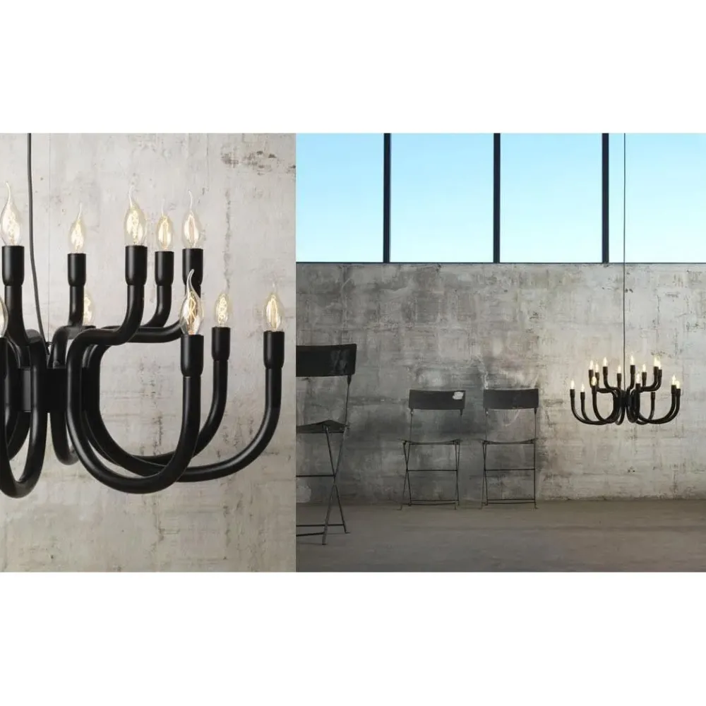 La sua silhouette ricorda uno dei lampadari che campeggiano nei palazzi più ricchi e barocchi, ma la sua metamorfosi verso la pulizia più estrema porta Snoob a poter essere collocato in qualsiasi luogo mantenendo sempre la sua imponenza.