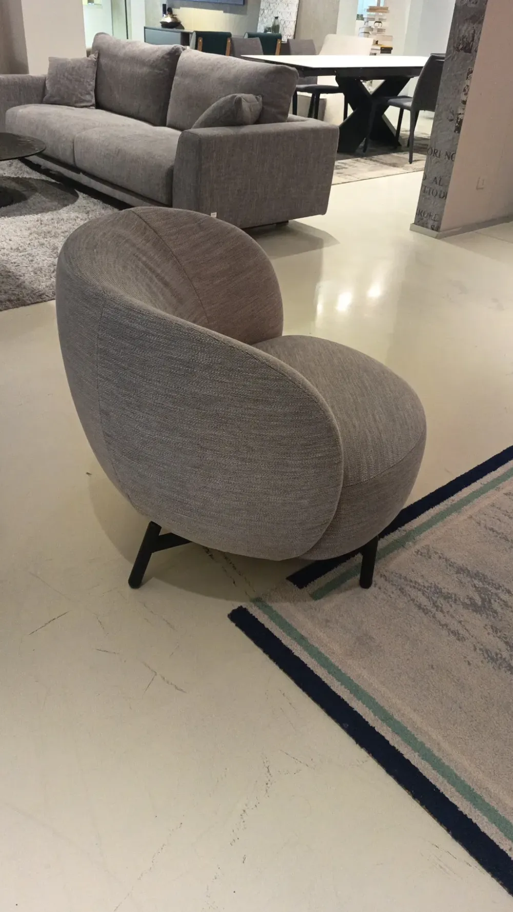 Poltrona Kartell modello Lunam rivestita in tessuto grigio chiaro, dimensione cm.83*82*75h. Design by Patricia Urquiola, molto confortevole dal forme curve e sinuose, piedini a vista colo nero.
