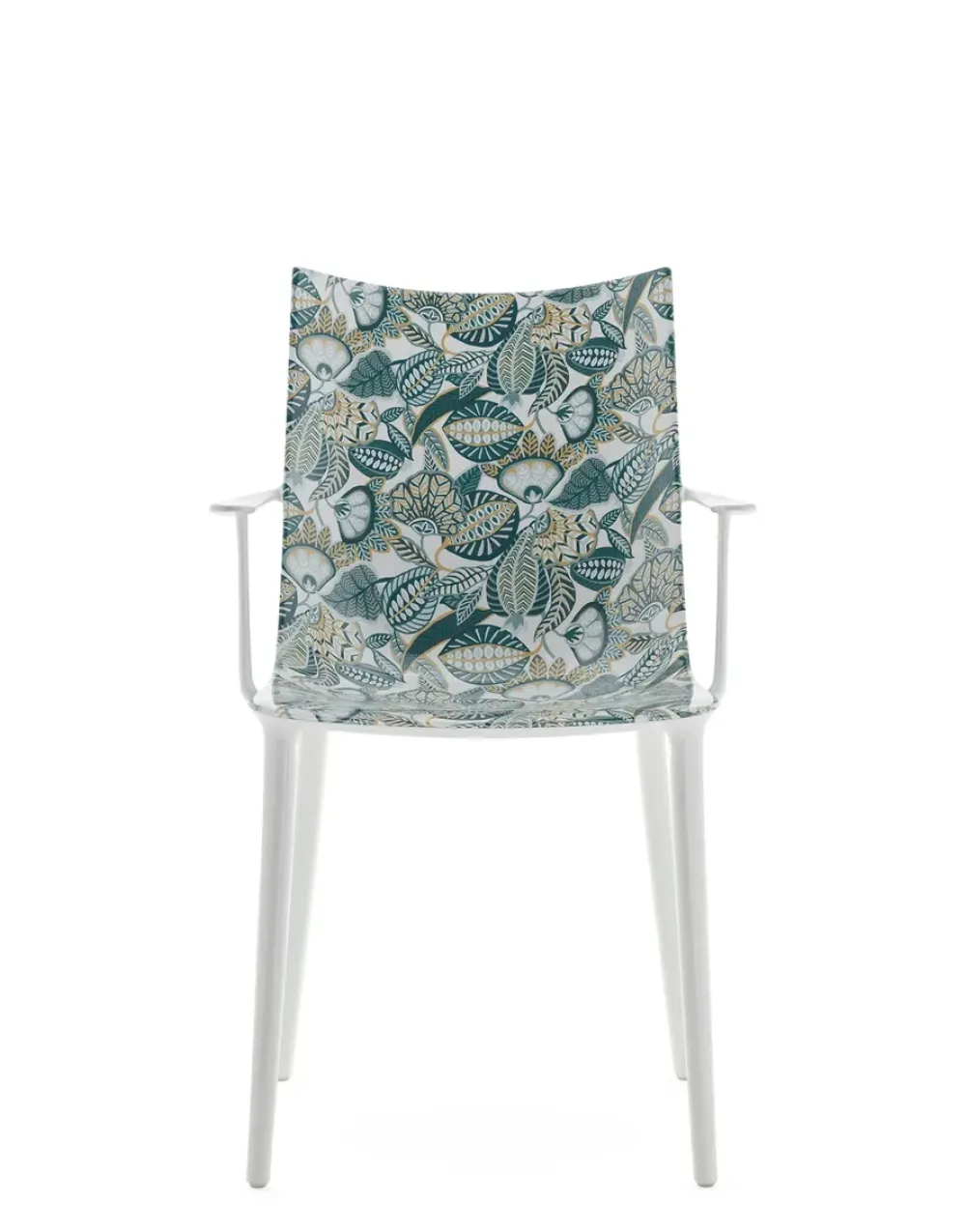 Set composto da nr 4 sedie. Disegnata da Philippe Starck che sperimenta una nuova tecnica di graphic impression in cui, con uno stampaggio altamente tecnologico, viene realizzato un pattern floreale nella parte interna della sedia, combinando eleganza e rispetto per l ambiente in un perfetto equilibrio di forma e funzione.