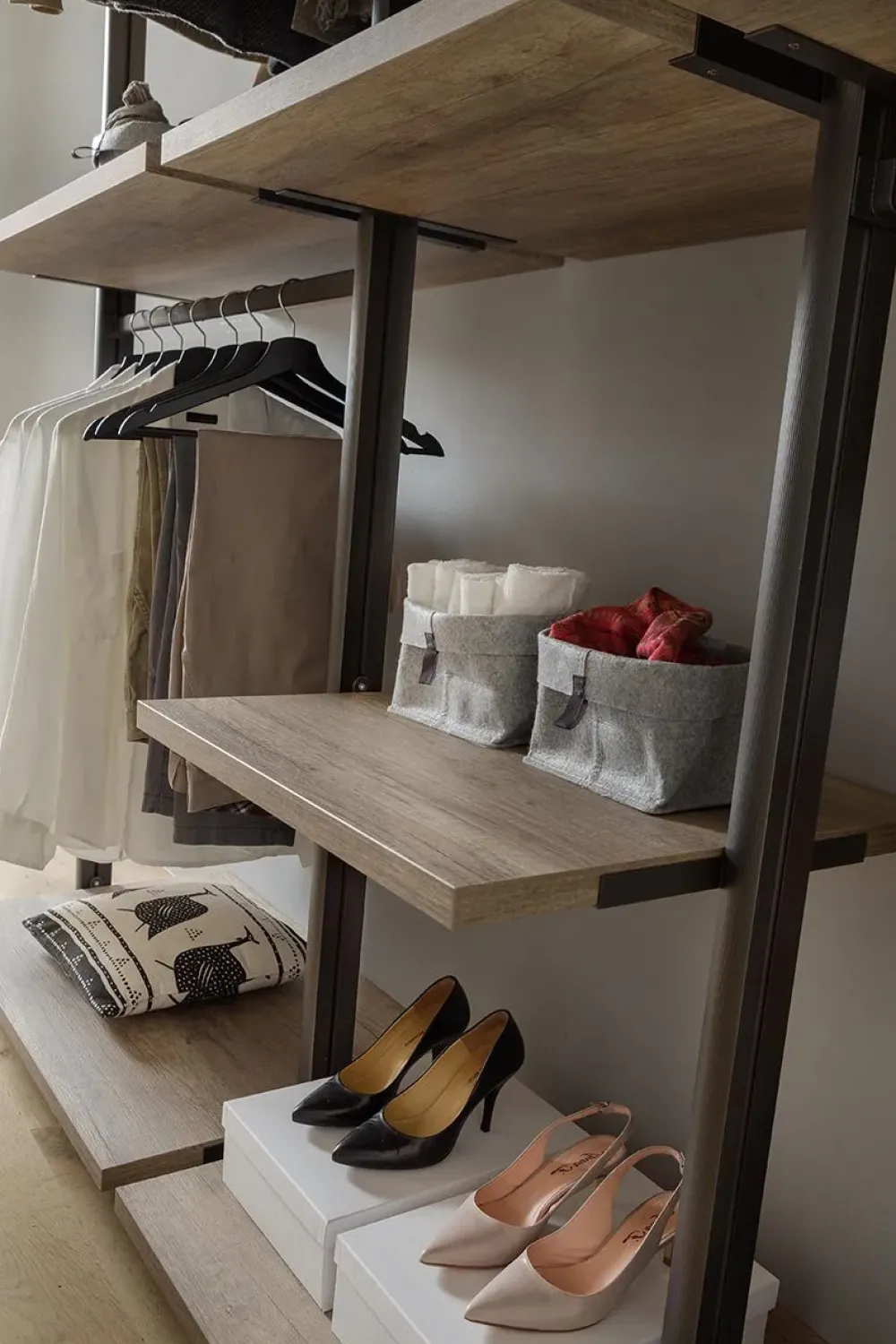 Sono disponibili anche accessori quali tubi portabiti e cassettiere per creare scaffalature per cabine armadio, ripostigli e negozi.