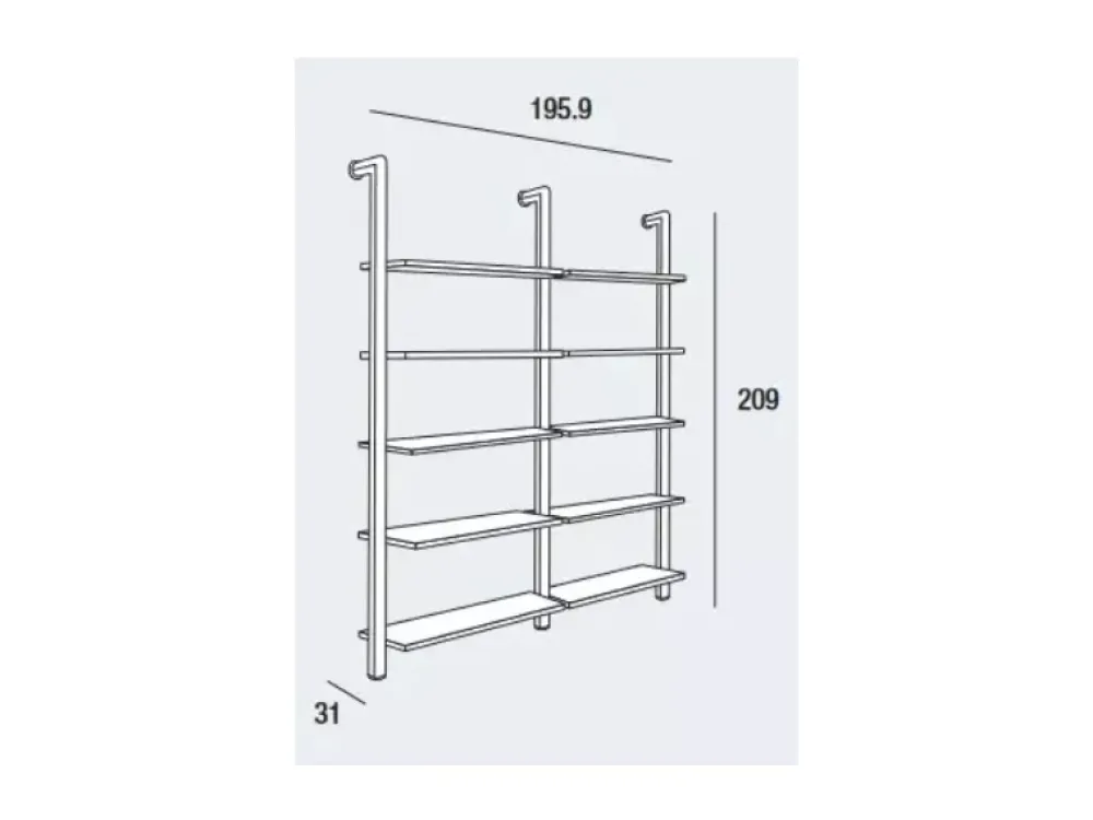 Dimensioni: L.196 P.31H.209 cm; disponibile anche in altre composizioni.