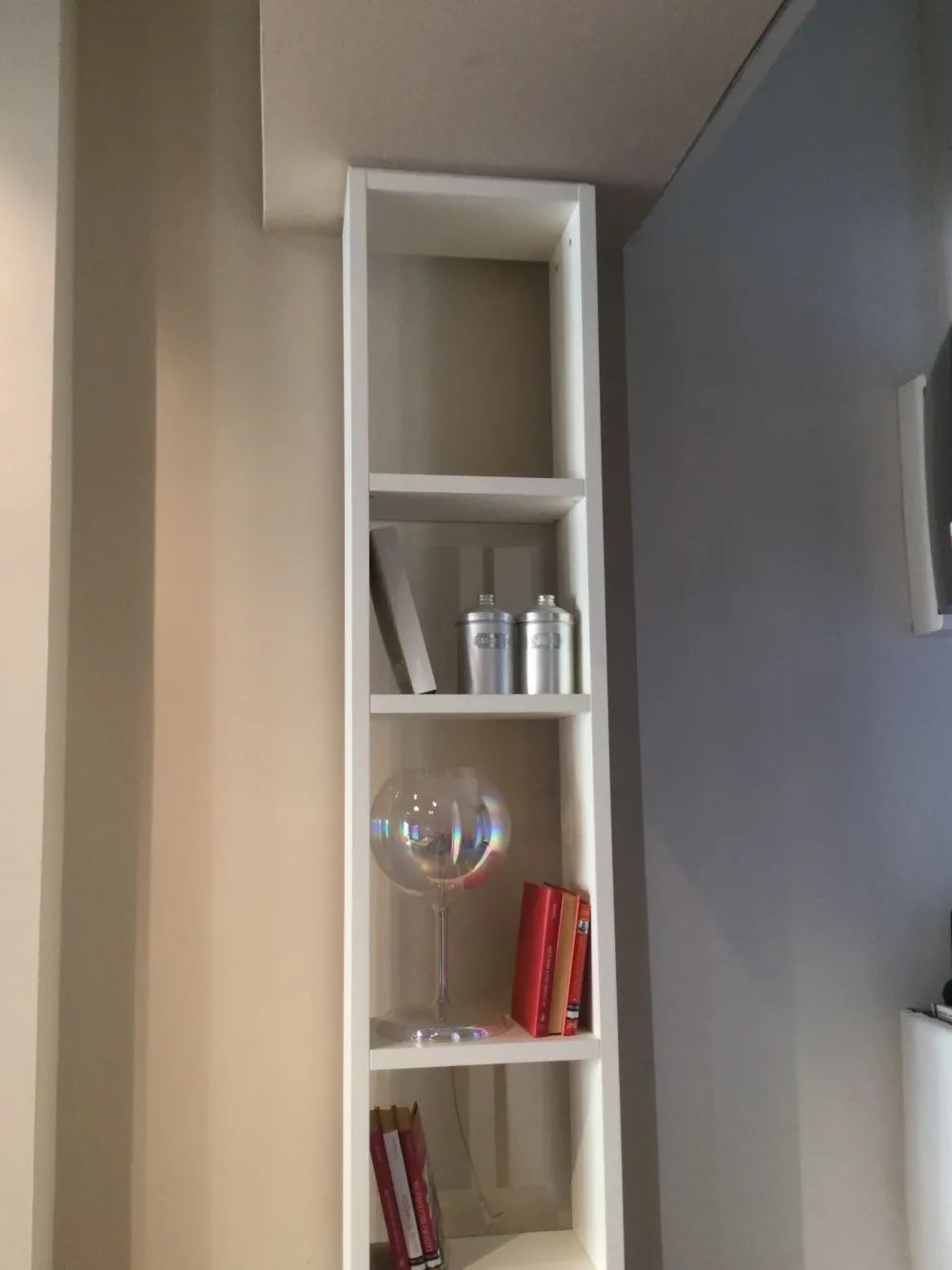 Questa libreria Weightless per la zona giorno va da 0 a 50 cm di larghezza.