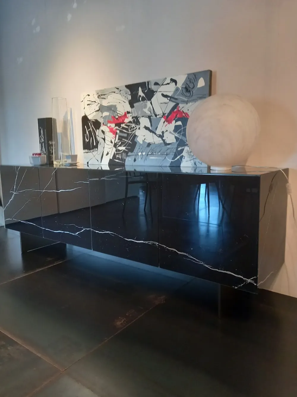 FINITURA: XGLASS MARQUINA LUCIDO, PIEDI PELTRO STEEL