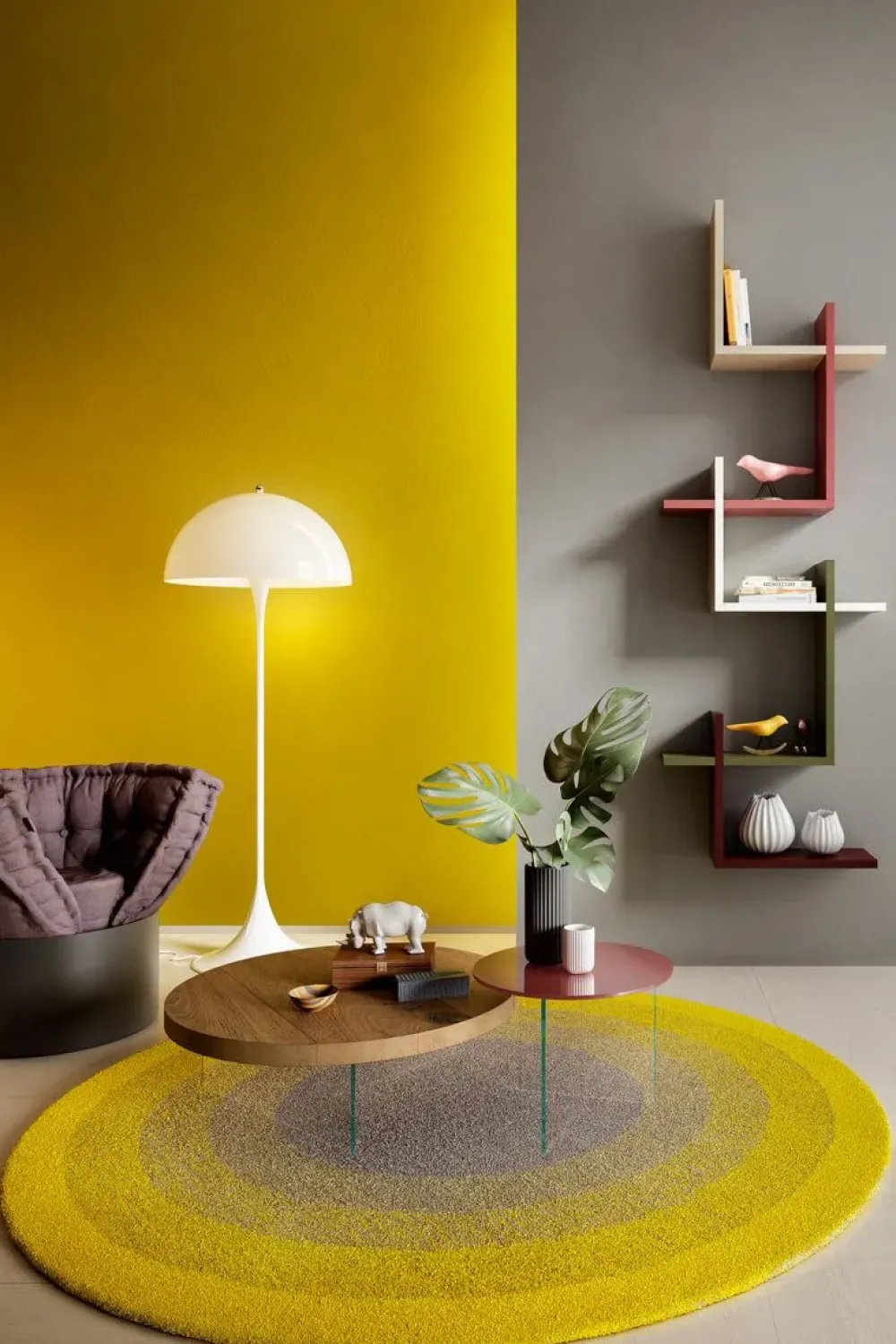 La grande scelta di misure e finiture del piano permette di creare un tavolino rotondo che dialoga in modo armonioso con gli altri elementi dell’arredo LAGO.