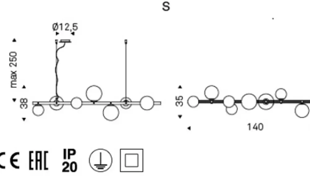 S: 7 lampadine led da 2W, attacco G9.