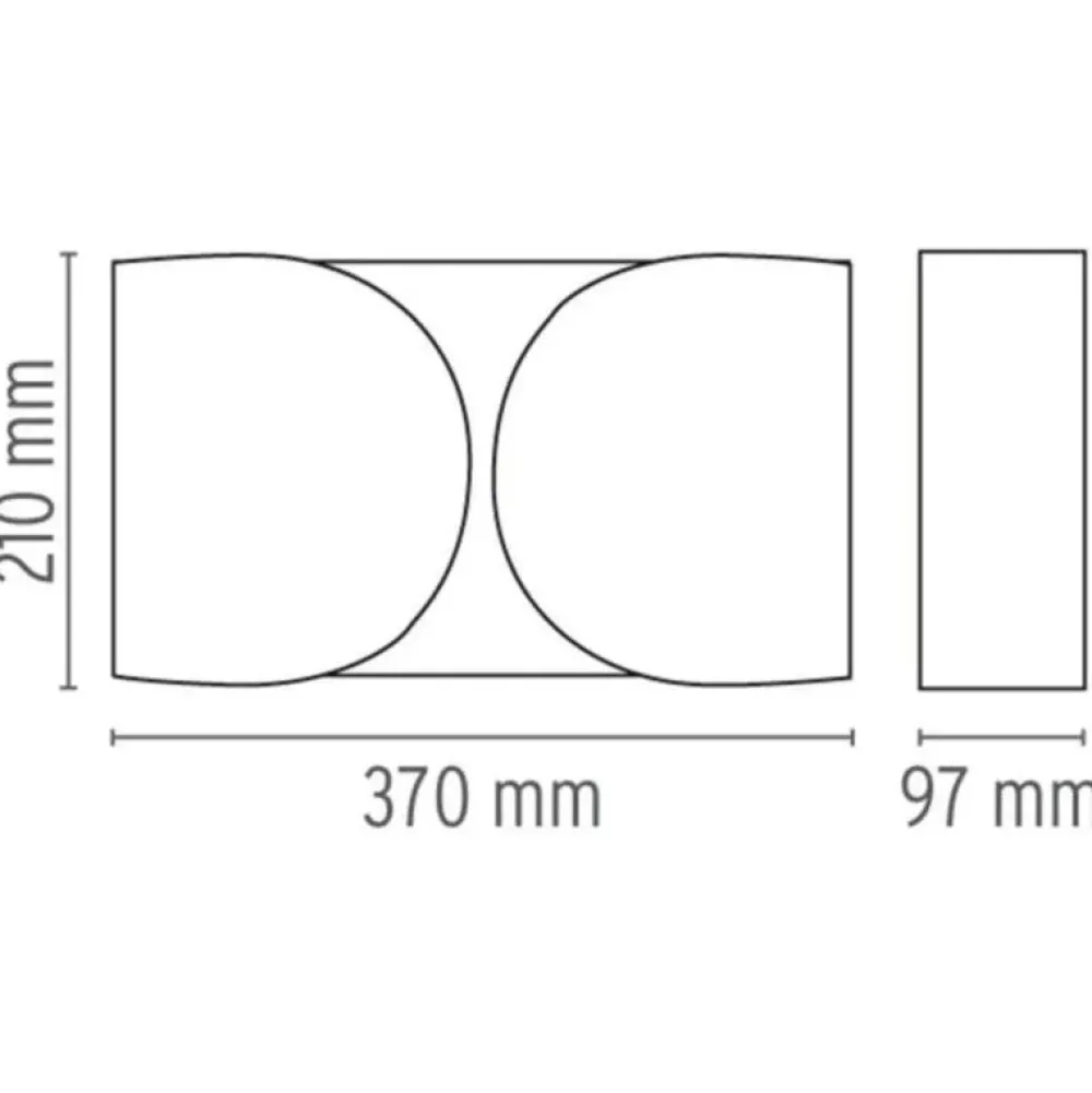 Lampada da parete a luce diretta/indiretta/parzialmente diffusa. L’attacco a muro è in acciaio tranciato, piegato e verniciato a polvere di colore bianco lucido. Diffusore in acciaio tranciato, curvato e verniciato a polvere. I due supporti portalampada sono in nylon, stampato ad iniezione di colore bianco.