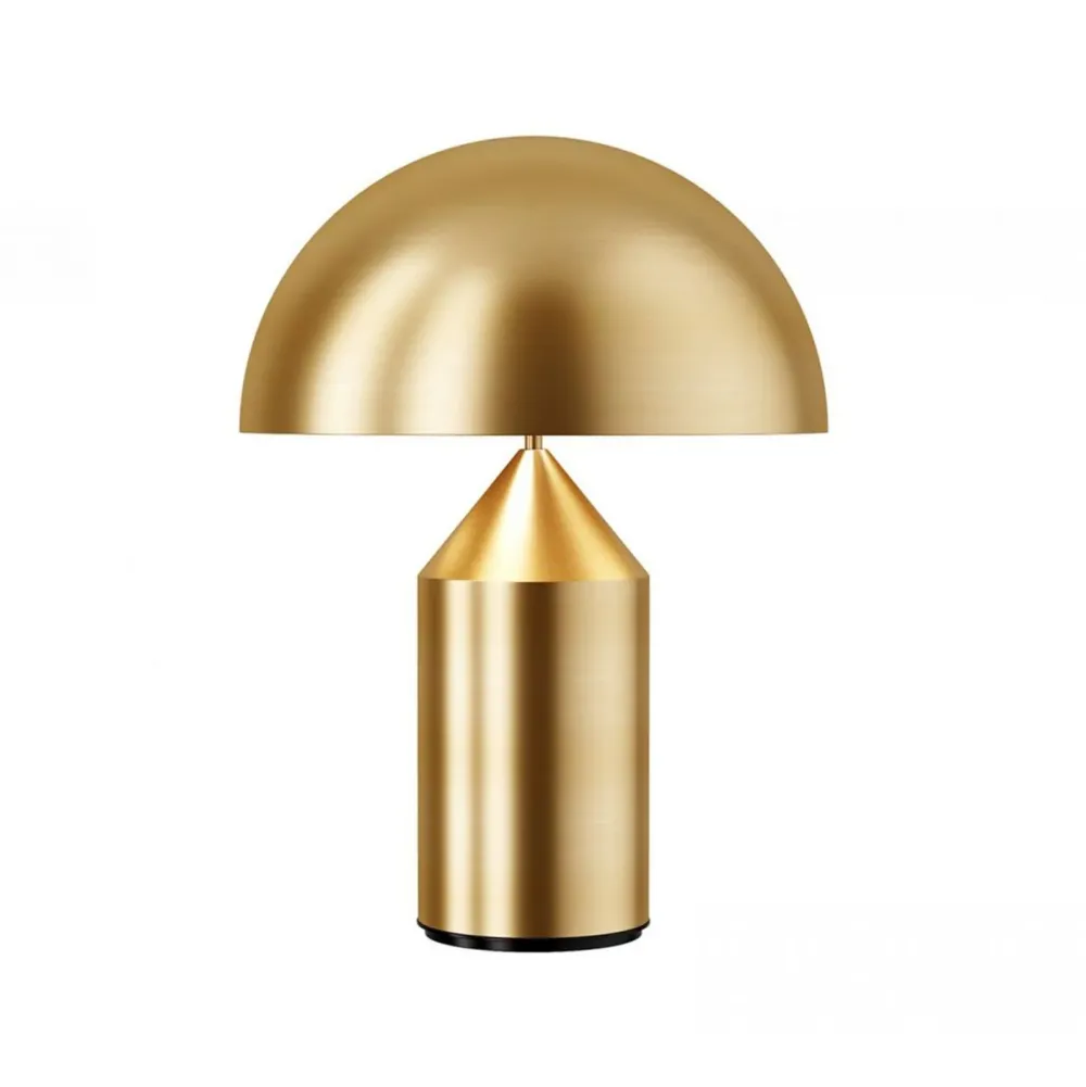 Ideata nel 1977 da Vico Magistretti, Atollo è diventata negli anni l’archetipo della lampada da tavolo, vincendo il Compasso d’Oro nel 1979, e rivoluzionando completamente il modo di immaginare il classico abat-jour. Colore : oro satinato.
