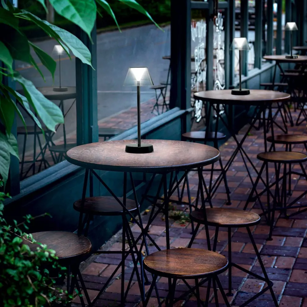 Lampada da tavolo a batteria ricaricabile con finitura coffee.