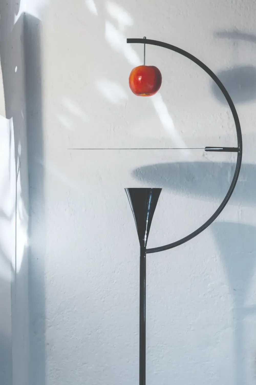 NEWTON. Con diretto riferimento all’aneddoto della mela che cade sulla testa di Isaac Newton, suggerendo l’esistenza della gravità, il diffusore in metallo di Newton ruota e illumina l’elemento naturale in un mix di luce diretta e diffusa. Una sorgente LED ad alto rendimento esalta i colori dei frutti. LED potenza 16W 110-240V, 1150lM 2700°K. Diffusore orientabile. Dimensioni: Ø 45,5 H203.