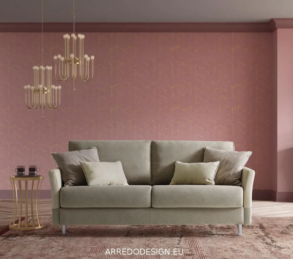 Arredo Design propone il divano letto Maldive dal giovane taglio sartoriale, dotato di rete elettrosaldata di ultima generazione per una massimo comfort sia come divano che come letto.