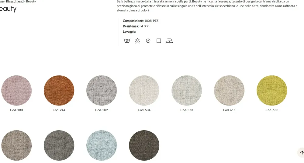 - Rivestimento: tessuto