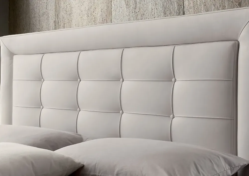 Il rivestimento esterno della testata, non sfoderabile, è disponibile in tessuto o ecopelle.