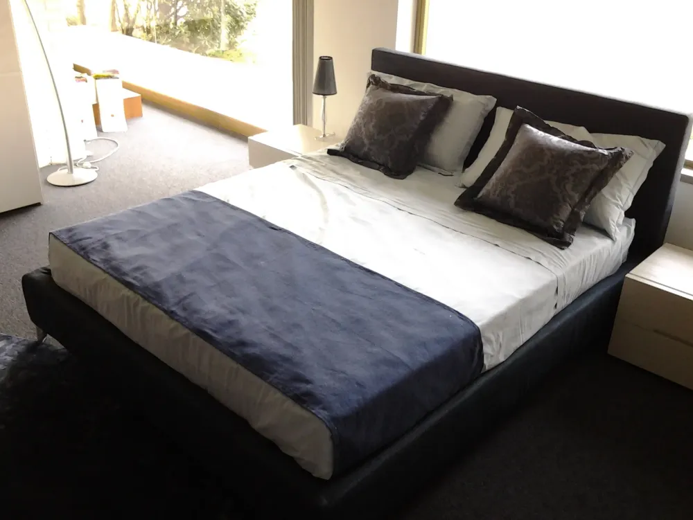Il giroletto rivestito con il mdedesimo tessuto blu della testata è completamente sfoderabile.