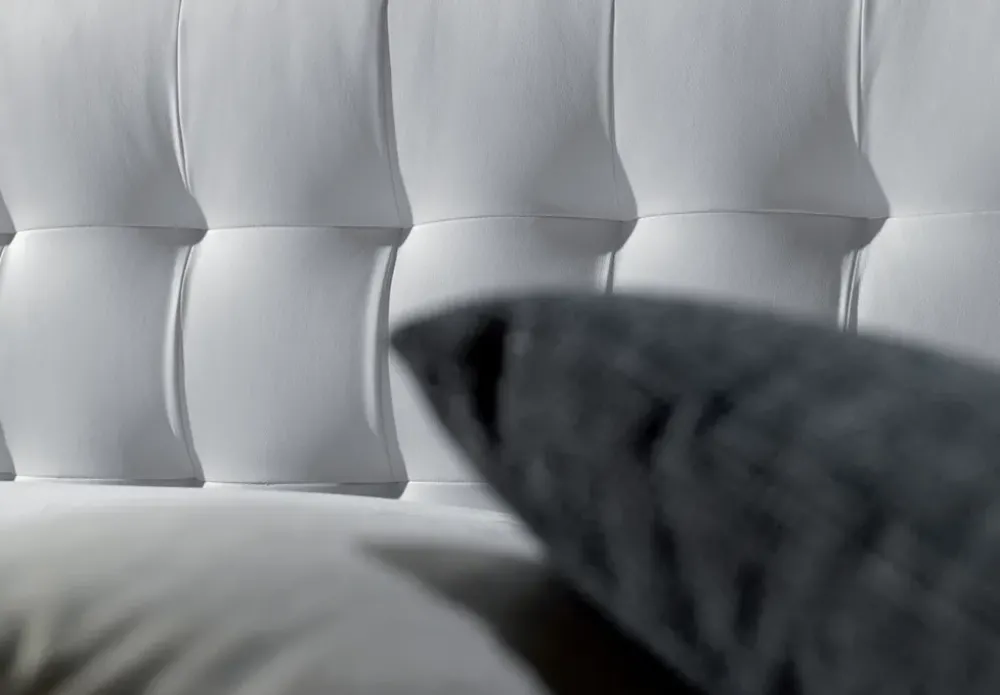 Il rivestimento esterno della testata, non sfoderabile, è disponibile in tessuto o ecopelle.