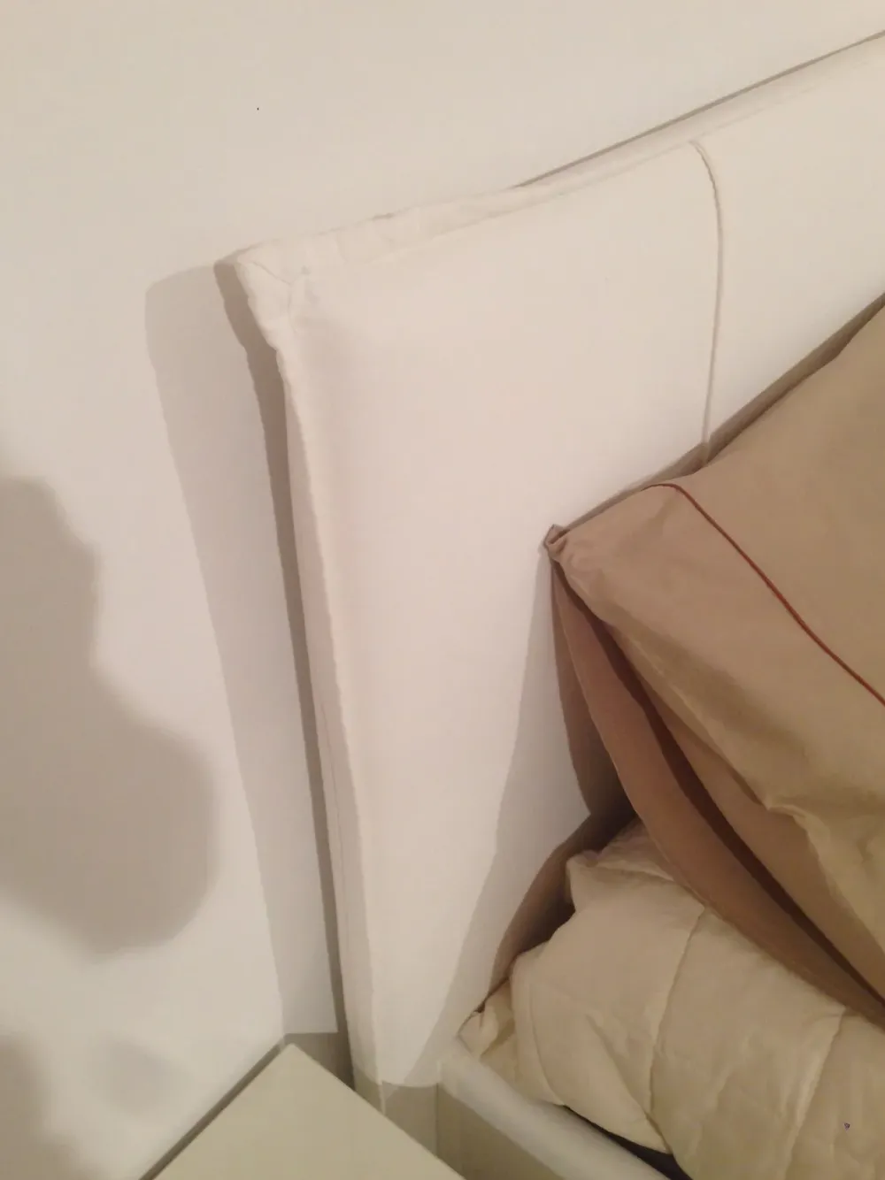 La testiera è alta ed abbellita da cuciture verticali in rilievo.