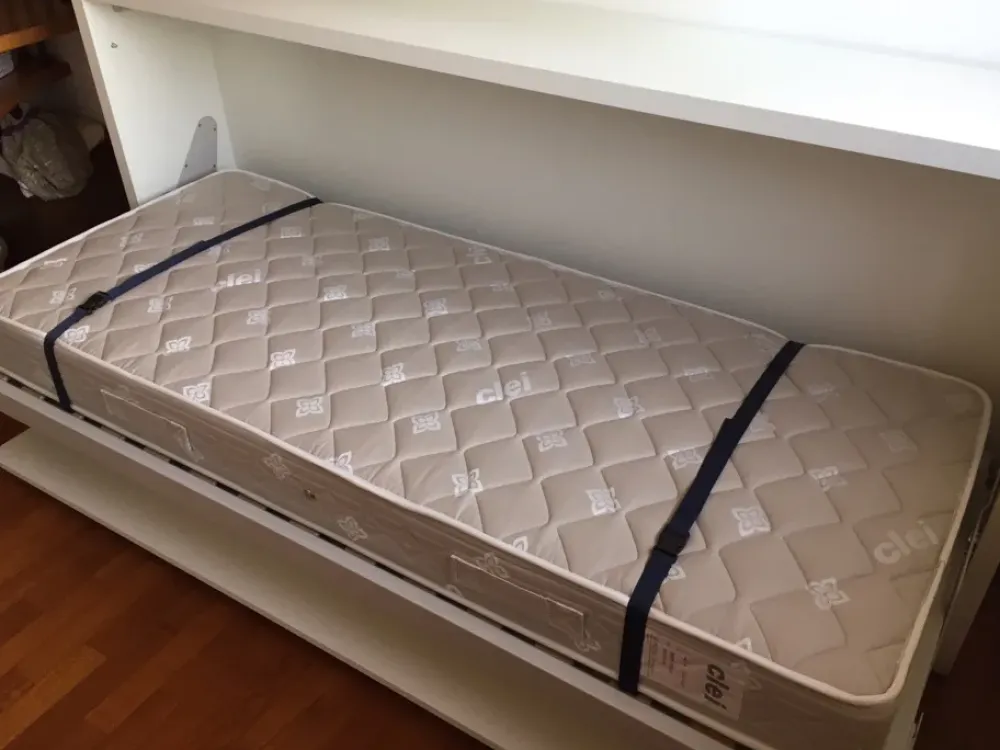 PROMOZIONE SUL NUOVO SU COLLEZIONE PER NUOVA APERTURA PUNTO VENDITA CLEI PROMOZIONE SUL NUOVO / PREZZO OUTLET Letto singolo a scomparsa con scrivania modello Kali Board 90 di Clei è la soluzione per avere 1 letto e un tavolo lavoro sempre pronto nella stessa parete. Il nuovo meccanismo permette di non dover togliere la maggior parte degli oggetti dalla scrivania che rimane sempre orizzontale quando si apre il letto . Dimensioni : Chiuso L cm 216 x H cm 102,3 x Prof. cm 35 / 85 Aperto L cm 216 x H cm 102,3 x Prof. cm 95,2 Finitura : IL PREZZO E’ INERENTE AL LETTO KALI BOARD 90 IN FINITURA MELAMINICO BIANCO E’ possibile inserire i vari optional come il materasso , la testata , le luci interni con gli stessi sconti. Essendo un elemento da produrre , sono possibili variazioni sul colore con la dovuta differenza e preventivi su tutta la collezione Clei . E’ possibile avere lo stesso letto da 1 piazza 1/2 ” mod Kali board 120 ” SIAMO RIVENDITORI CLEI A LISSONE E SPEDIAMO IN TUTTA ITALIA E OLTRE per info compilare il form PROMOZIONE SUL NUOVO SU COLLEZIONE PER NUOVA APERTURA PUNTO VENDITA CLEI