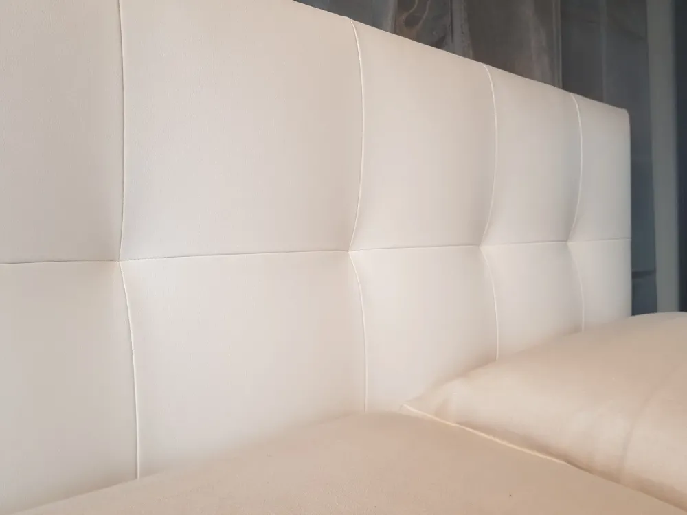 Il letto Max di Twils, nella versione Capitonnè Basso, è un letto matrimoniale rivestito in ecopelle bianca scontato. La struttura è in tamburato di abete mentre il giroletto è in trucciolare di pioppo. L’imbottitura del letto è in espanso a diverse densità e vellutino mentre il rivestimento è completamente sfoderabile in ecopelle bianca. Il letto Max è dotato di rete a doghe da cm 160×200 e ha il giroletto alto cm 14 con piedi in legno laccato bianco. Il letto misura complessivamente cm 177 di larghezza, cm 216 di profondità e cm 115 di altezza. La testata ha spessore 7 cm. Siamo rivenditori Twils a Pontelongo vicino a Padova.
