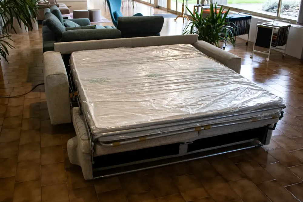 Divano letto con piedi alti 13cm per una pulizia facilitata, rete elettro saldata, materasso in espanso 160 x 195 x 14 cm.