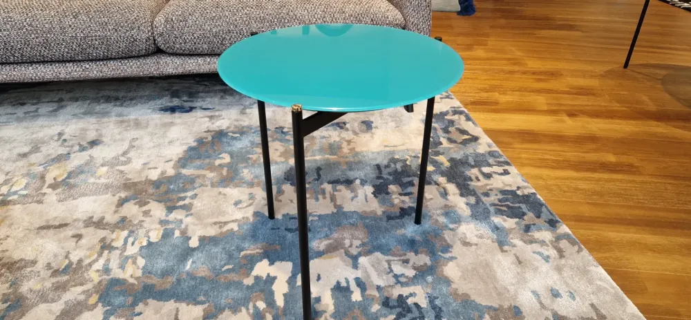 Il Tavolino Caillou di cm 50-52 diam x 55H è un esempio sublime di come le sovrapposizioni di forme, geometrie e colori possano trasformare un semplice oggetto in un pezzo darte funzionale. Questo tavolino non è solo un complemento darredo, ma un esercizio di stile che gioca con riflessi di vetro e metallo prezioso, offrendo unesperienza visiva unica e sofisticata. Le linee pulite e rigorose del design sono lessenza della sua bellezza, creando un equilibrio perfetto tra eleganza e modernità. Versione piano vetro laccato Acqua struttura nera.