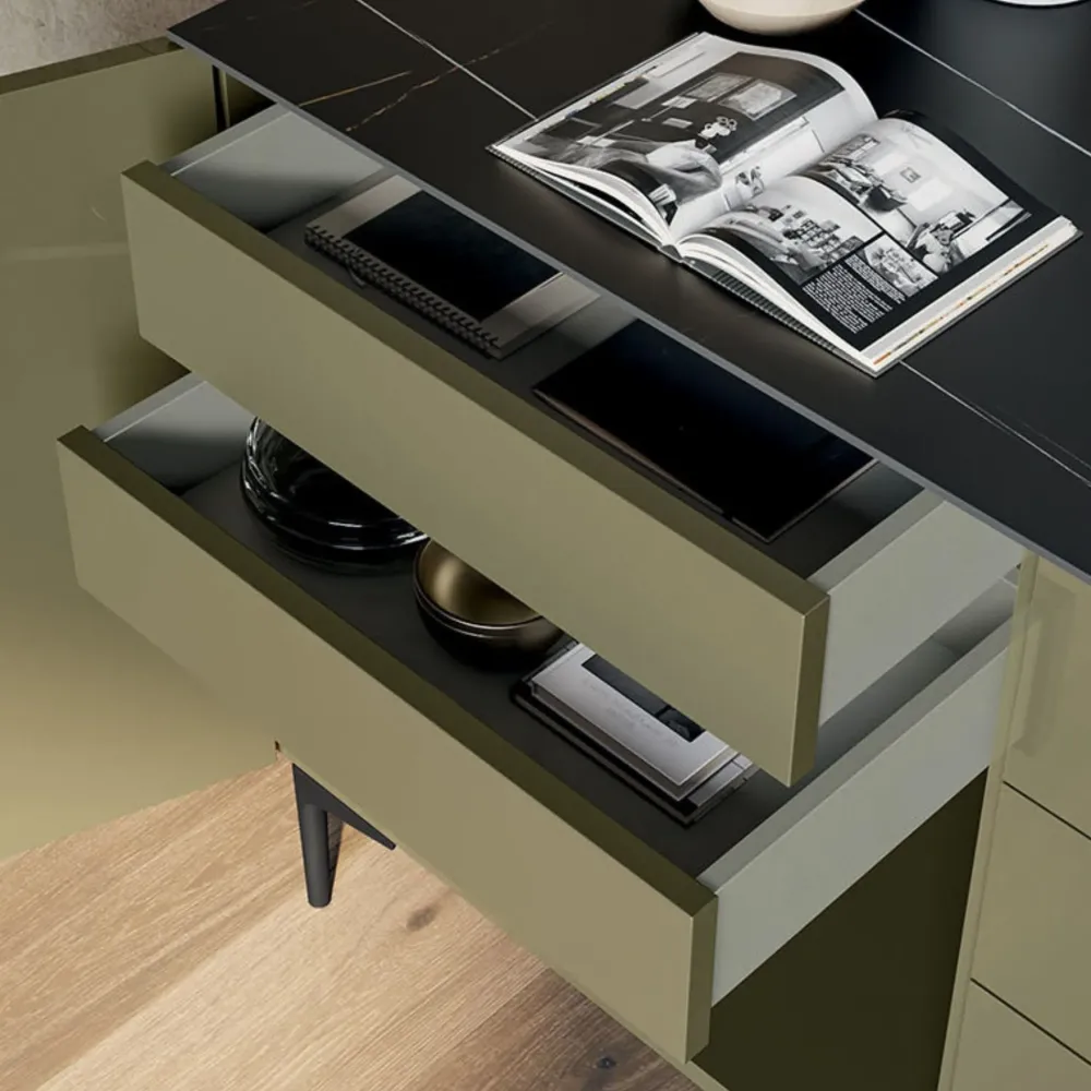Vani chiusi, cassetti, cestoni, ripiani in legno o vetro, apertura push-pull o maniglia a gola: ogni dettaglio è pensato per adattarsi al tuo stile e alle tue esigenze quotidiane.