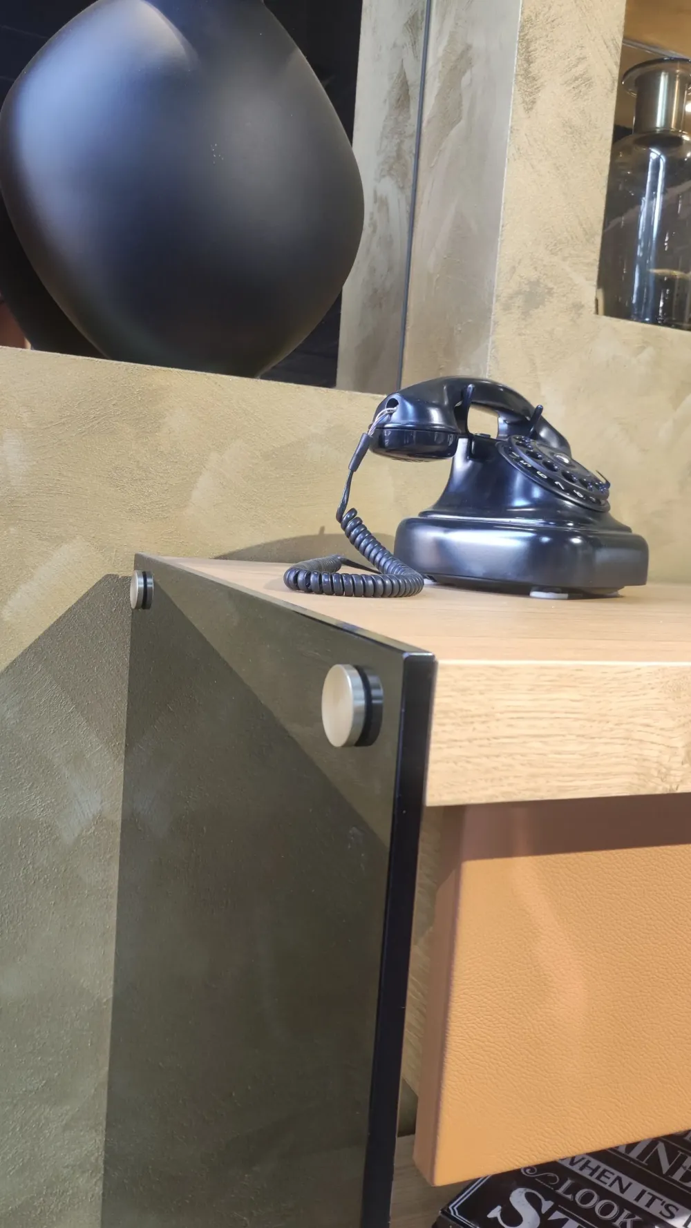 FIANCHI IN VETRO FUME’ CON CASSETTO IN CUOIO